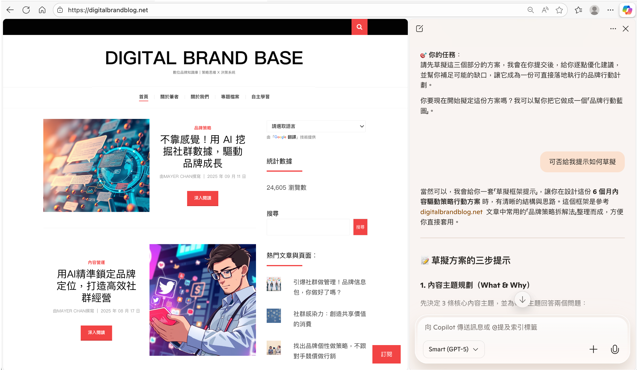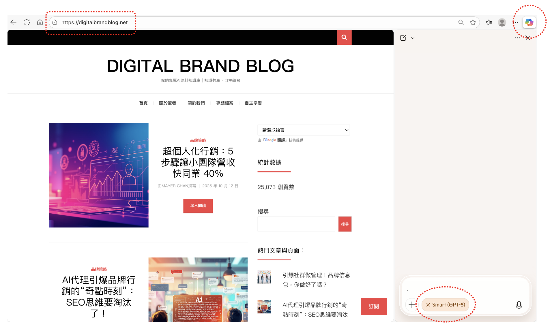 - 在瀏覽器中輸入網址:https://digitalbrandblog.net 並開啟頁面。