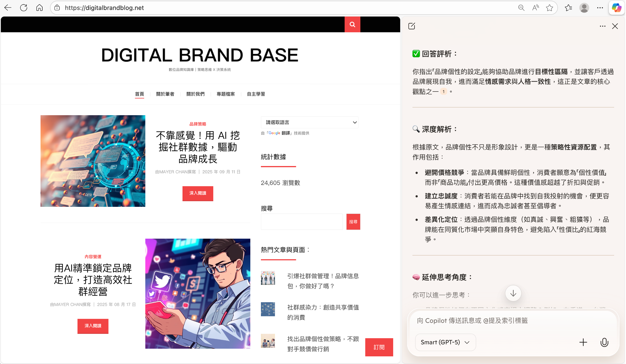 上述操作透過 Microsoft Edge Copilot 的介面進行,協助深入洞悉知識,避免資訊誤導與認知偏差,真正建立可驗證、可追溯的知識體系。